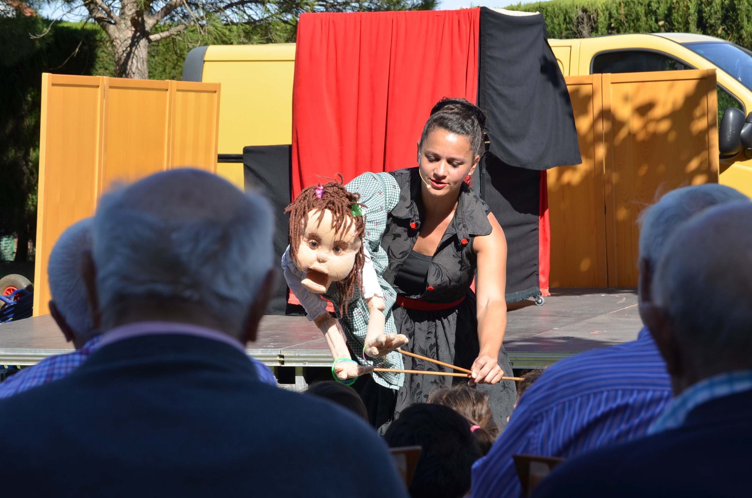 Numerosos espectadores de todas las edades, entre ellos los 70 residentes, asistieron con entusiasmo a esta función, habitual desde los orígenes del festival. La terapeuta ocupacional Patricia Mora considera que el teatro ofrece muchos beneficios a las personas mayores. “Para el público en general el teatro es un medio facilitador para resolver problemas, fomentar memorias colectivas, recordar historias pasadas, … Y para los usuarios de la residencia comarcal de Binéfar este tipo de actuaciones les ayuda a aumentar su autoestima, la confianza en sí mismo, la capacidad expresiva tanto física como emocional, lo cual aumenta la autonomía”. La terapeuta, encargada de coordinar esta actuación, se mostraba muy agradecida de que “Imaginaria nos tenga en cuenta ya que es una manera de que nuestros usuarios se sientan integrados en la comunidad. No por el hecho de estar en una residencia quiere decir que están separados de los binefarense. Este tipo de actuaciones se deben encuadrar en la arteterapia ya que disminuye la ansiedad, fomenta autoestima y genera confianza entre otro tipo de beneficios como sentirse útiles y preservar su memoria”.