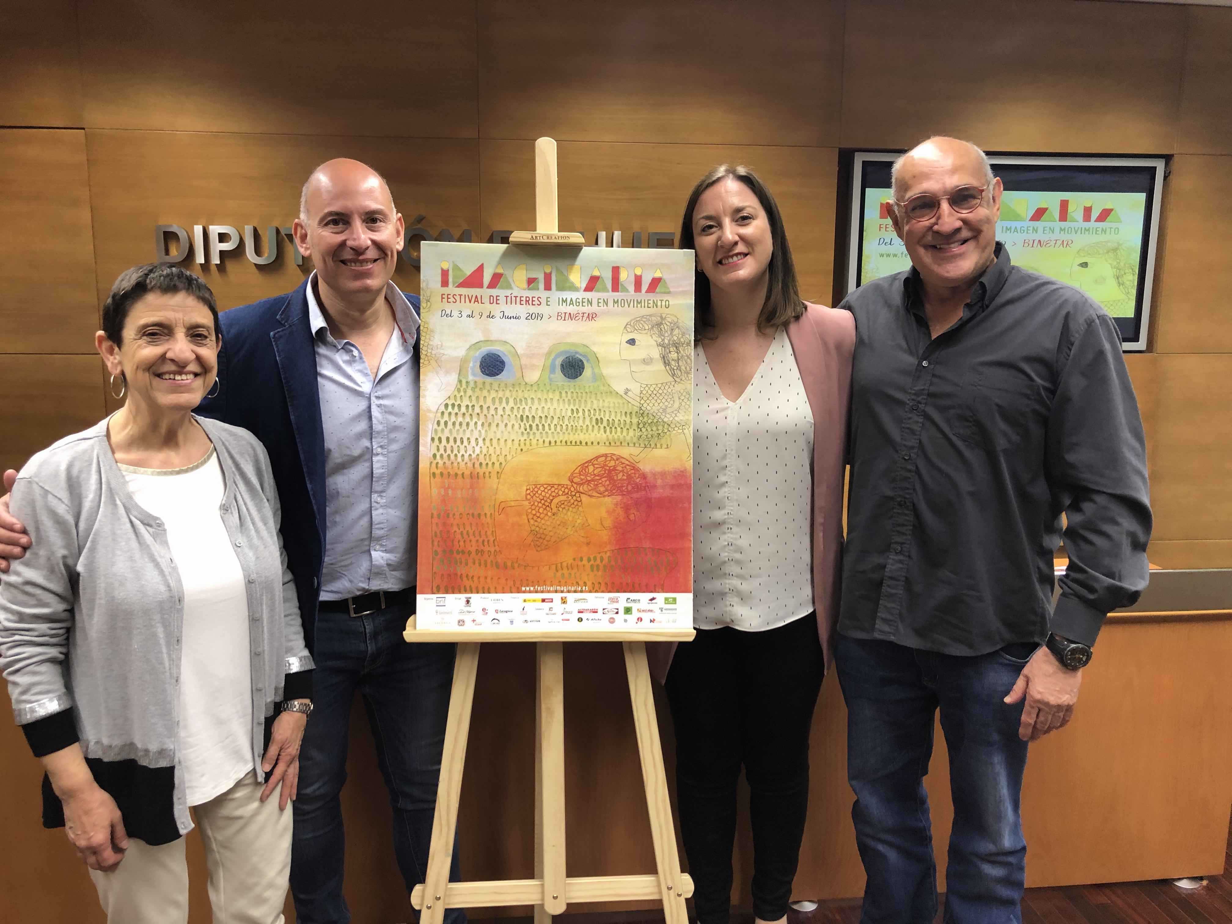 Demostrar que los espectáculos de animación no tienen edad y atraer a los jóvenes y al público adulto son los retos que se marca Imaginaria, el Festival de Títeres e Imagen en Movimiento cuya séptima edición se celebra en Binéfar del 3 al 9 de junio, organizado por el Ayuntamiento binefarense, en colaboración con entidades como la Diputación Provincial de Huesca (DPH) y Ministerio de Cultura, entre otras entidades y empresas de la zona. A lo largo de esos días, las plazas, calles y diversos escenarios de Binéfar esperan recibir en torno a 10.000 visitantes que asistirán a los 40 espectáculos programados por la dirección artística del festival - Los Titiriteros de Binéfar, en colaboración con Lieben producciones - de diversas artes escénicas: títeres, pasacalles, música, proyección de cortometraje, exposiciones, conferencias, teatro, danza, magia, … Todo ello se presenta este año bajo un cartel diseñado por la ilustradora Rosa May, y que ha sido donado al Ayuntamiento.