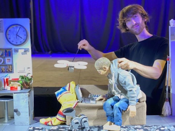 ‘Error 404’ es un espectáculo sin palabras dirigido a la infancia y a la juventud, un público cada vez más habituado a las nuevas tecnologías, como Steve, personaje principal, un joven común y corriente con una vida simple y rutinaria, sumergido cada vez más en un mundo repleto de aparatos tecnológicos (teléfono móvil, ordenador, dron, hasta un perro robot como mascota virtual). Esta delicada y emotiva obra invita a reflexionar sobre el valor de la vida y las maravillas que esta nos ofrece y que muchas veces pasamos por alto por pasar tanto tiempo enganchado a las pantallas digitales. El mismo Wagner fue un niño adicto a los videojuegos como reconoce, de hecho su experiencia le ha servido para inspirar esta aplaudida obra. “El oficio me viene de la sangre, mi hermano y yo somos titiriteros. Este proyecto surge porque quería crear algo nuevo y además estaba enganchado a los videojuegos como casi todos los niños. Me di cuenta de que el tiempo se iba volando y después de jugar al videojuego no te quedan recuerdos -explica-. Empecé a moldear la idea y después de cuatro años salió a la luz en 2018 y comencé la gira mundial, llevando este mensaje súper importante para niños, adolescente y adultos en festivales. La adicción puede pasar a niños pero también a los grandes. He ido por varios continentes y me he dado cuenta de que la tecnología está globalizada porque los niños reaccionan y se ríen con las mismas cosas”.